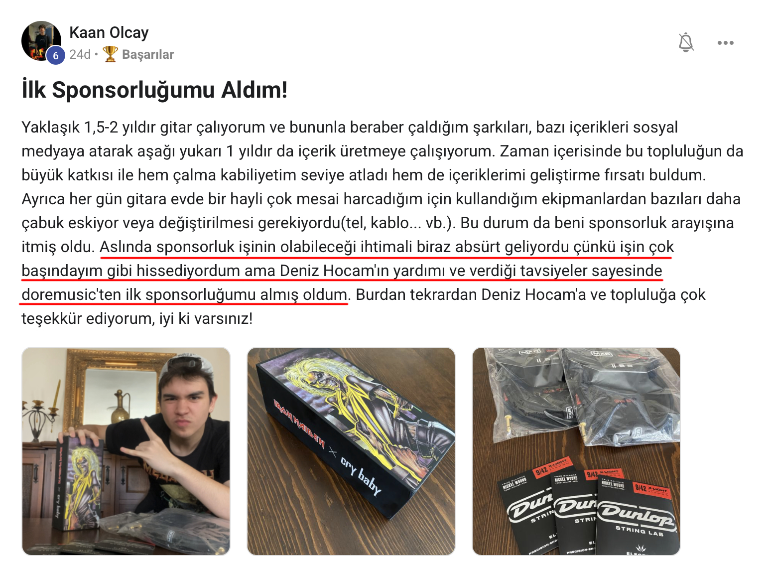 “Bu siteyi keşfetmemle birlikte elektro gitar çalmaya büyük bir zevkle başladım. Müzik Üniversitesi benim için çok büyük bir fırsat oldu.”